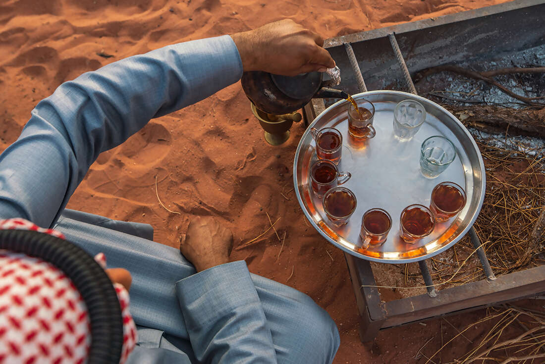 Uncover secret traditions and flavours with a Jordanian shepherd over breakfast. Drink fire-warmed sheep’s milk, then scoop bread into a pot of rich Galayah Bandoora.