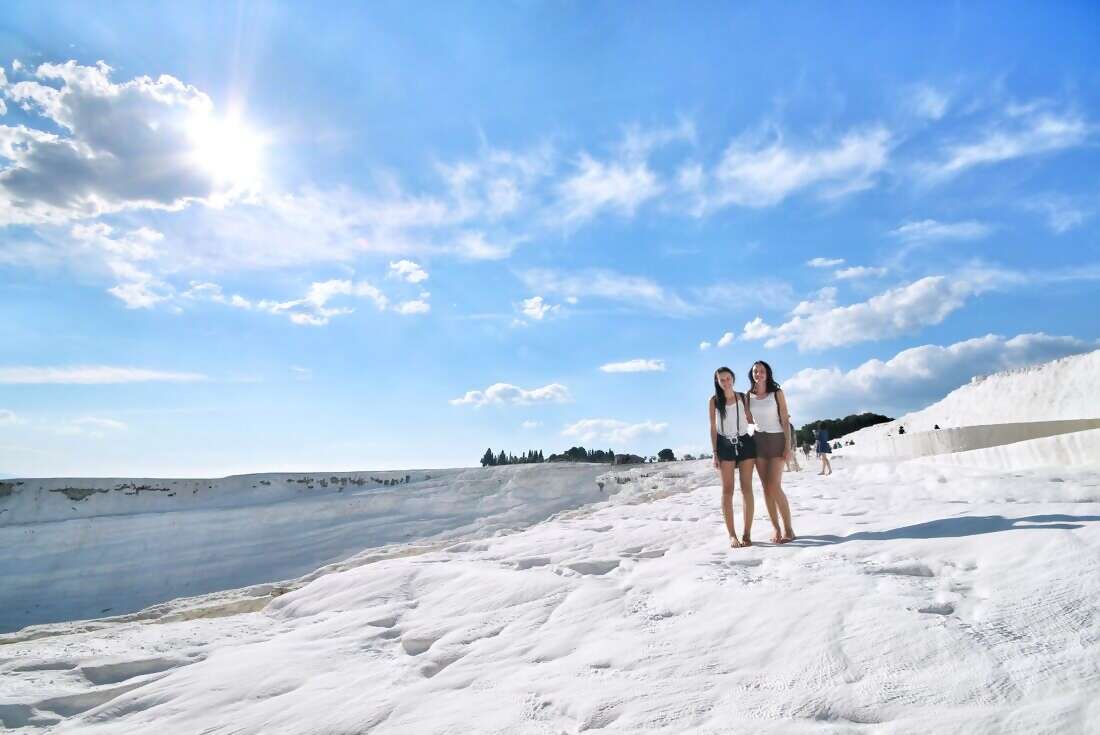 We’ve got the cure for whatever ails ya; the hot springs at Pamukkale, pure white calcium travertines that cascade down the cliffs overlooking the town, are said to have magical healing properties