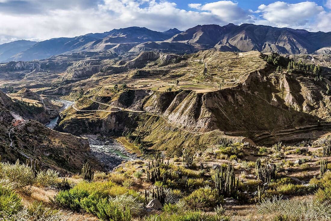 The Colca Canyon is twice as deep as the Grand Canyon, and some might even say, twice as grand. Witness the dizzying scenery, soaring condors and the terraced crops of the locals