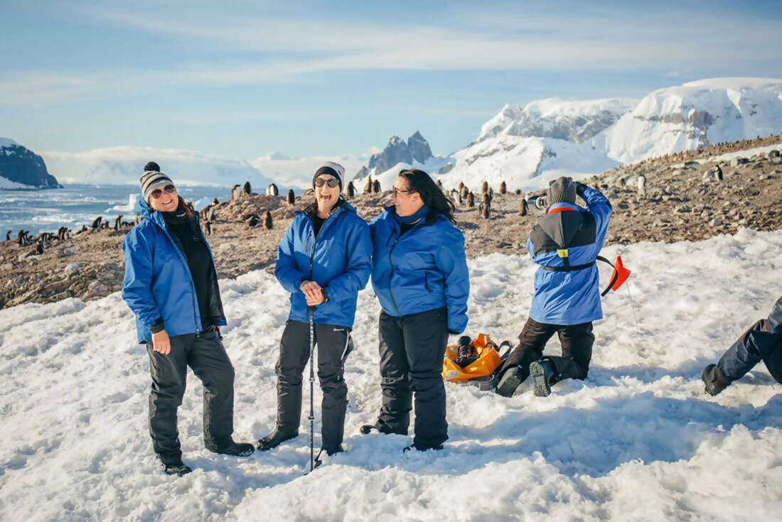 Hate looking from afar? With custom Zodiac boats to transport you close to the action and ashore on the Antarctic Peninsula, you’ll be waddling with penguins with all the gear (and some idea).